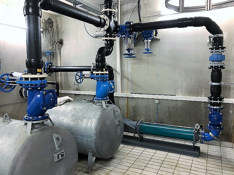 In Mischsystemen mit einem relativ hohen Regenwasseranteil kann es sinnvoll sein, eine pneumatische Abwasserförderanlage mit einer Pumpe zu kombinieren.